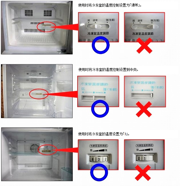 如果出现以上症状,请检查冷冻室温度控制设置是否设置为『強(冬期)』。