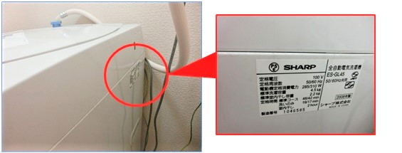 型号主要标识在侧面带有2~3个例如「NW」「SW」「AW」「WF」「WM」「NA」「ES」「JW」「DW」开始的英文字母的贴纸上。(有标识在操作键附近的情况)