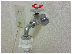 请将水阀按照「あける」的方向打开。
