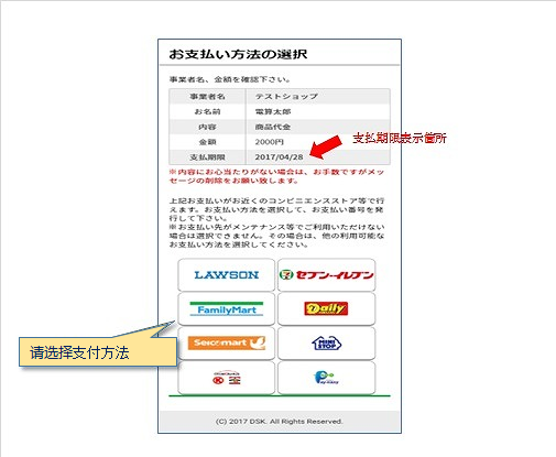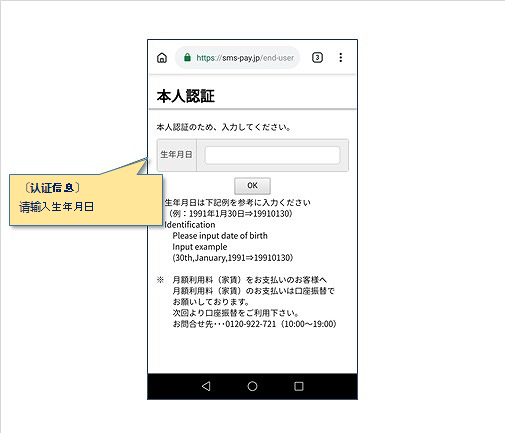 手机收到的SMS本文内URL链接上确认本人信息(生日),选择希望的便利店后,可以在该便利店进行支付。