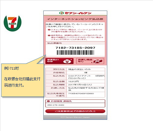 在便利店内的机器(Loppi:ロッピー)上、读取专用支付条码(也可以输入受付番号)后使用发行的伝票可以在收银台支付