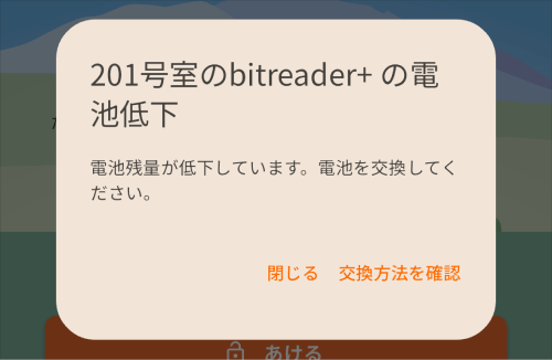 请务必确认bitlock MINI(室内側)和bit reader+(室外側)两侧的电量、电量不足时尽快更换两侧电池。