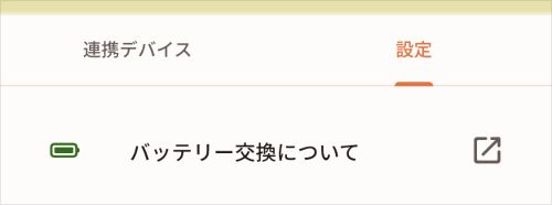 选择「設定」后会显示以下画面中的「バッテリー交換について」、可以在左边图标上确认到电 池的状况。
