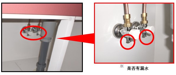2)确认浴室・洗面池排水阀附近没有漏水后,将水龙头打开确认水能否流出。