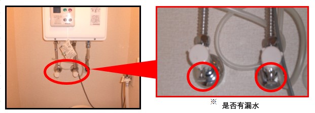 ※燃气未签约的话,水阀的热水侧水龙头会有水 流出,但不是热水。